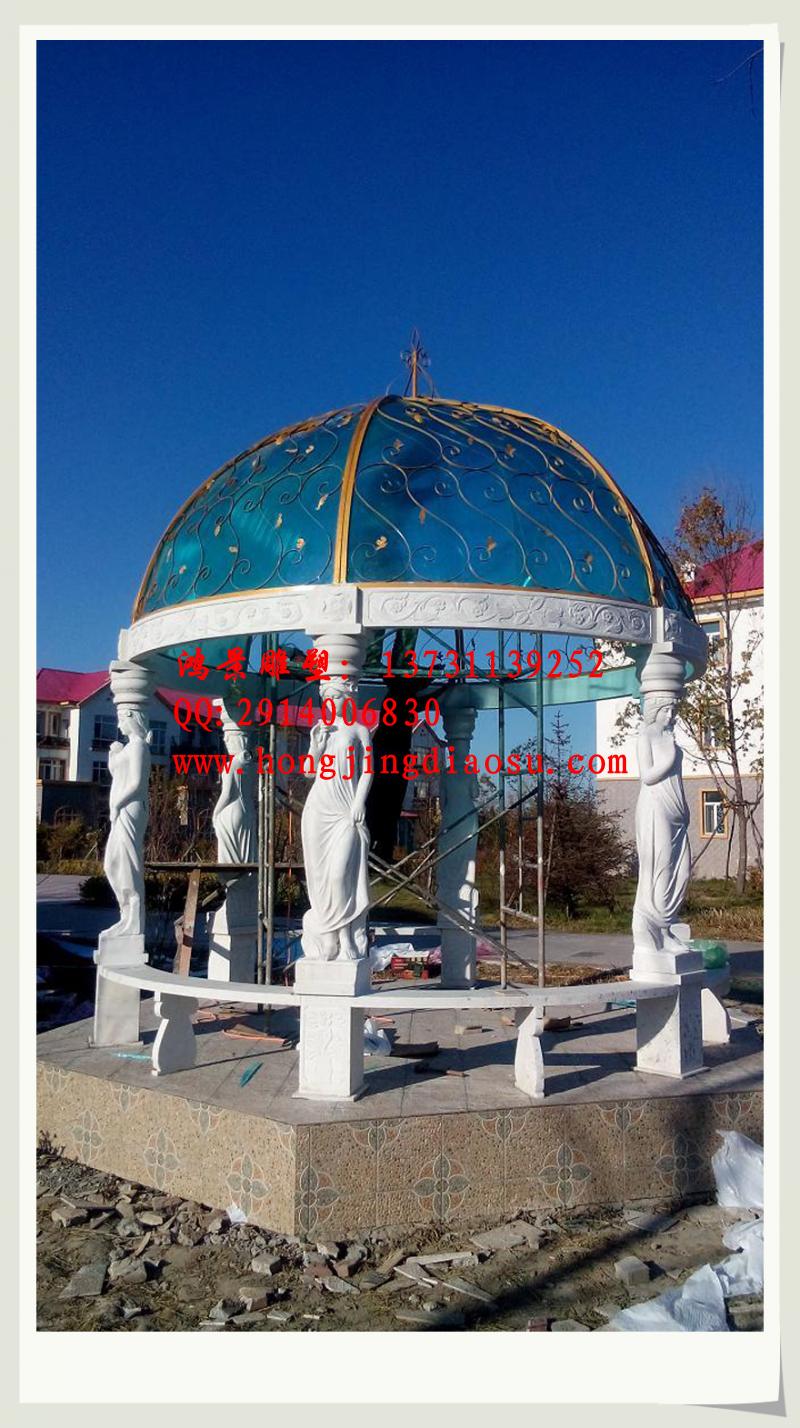 歐式石雕涼亭 漢白玉石雕涼亭 石雕涼亭工程案例
