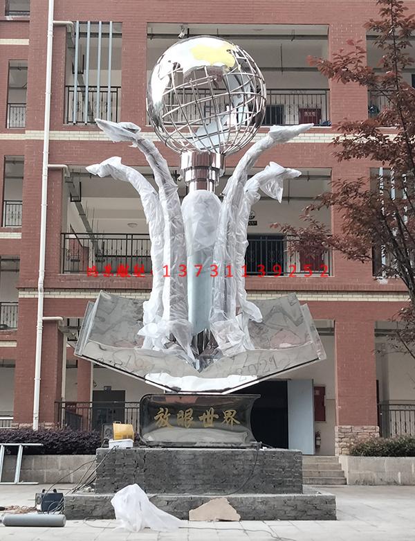 校園不銹鋼雕塑顧名思義就是為特定的院校校設(shè)計(jì)制作的雕塑作品,它能夠裝飾、豐富和美化校園環(huán)境空間,豐富師生的精神生活,是校園文化建設(shè)中的重要組成部分,同時(shí)也是也能夠體現(xiàn)出一所院校文化狀態(tài)。一所校園即使歷史再悠久,建筑再壯觀,沒(méi)有優(yōu)秀的校園雕塑作品也是不完整的,好的校園不銹鋼雕塑可以反映出整所院校的審美傾向、文化意識(shí)形態(tài)和深厚的文化氣息。校園不銹鋼雕塑是物質(zhì)化了的精神載體,它是校園文化的載體,校園雕塑作為一種精神載體,它具有文字屬性,同樣體現(xiàn)文以載道的精神。每一座校園雕塑均蘊(yùn)含有一定的道德追求,能對(duì)學(xué)生產(chǎn)生巨大的道德潛化作用,激發(fā)學(xué)生對(duì)道德原則、道德規(guī)范在情緒上的認(rèn)同,產(chǎn)生共鳴,同時(shí)對(duì)道德理想、道德建構(gòu)產(chǎn)生向往之情。在這樣的環(huán)境中,在這樣的文化影響下,會(huì)自然而然地激勵(lì)學(xué)生積極進(jìn)取、勇于創(chuàng)新。校園不銹鋼雕塑是校園環(huán)境的重要組成部分,不僅有美化校園環(huán)境的作用,還對(duì)后人有著更深的教育意義。鴻景不銹鋼雕塑廠家為遵義習(xí)水一中制作的放眼世界不銹鋼雕塑,雕塑高度為6米,采用不銹鋼板材制作,需要校園雕塑、園林景觀不銹鋼雕塑,歡迎來(lái)電咨詢。