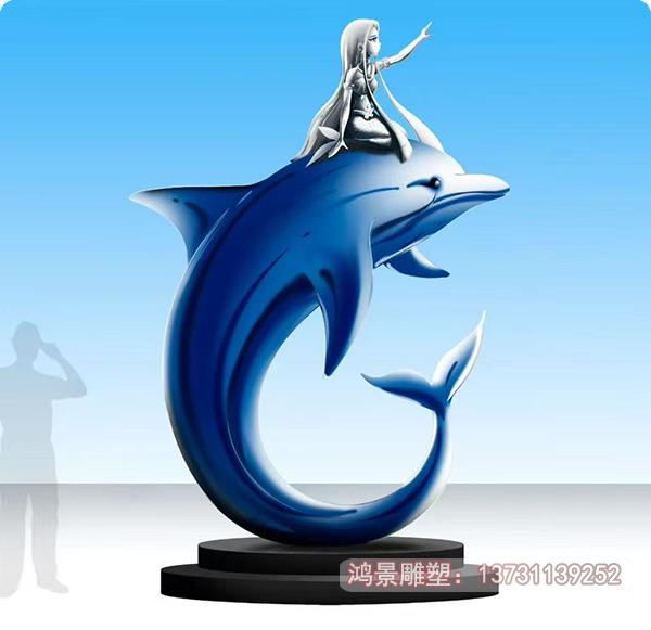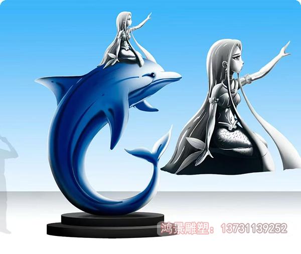 景觀不銹鋼美人魚海豚雕塑