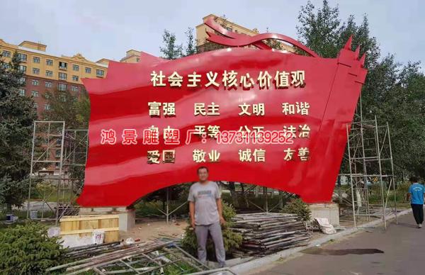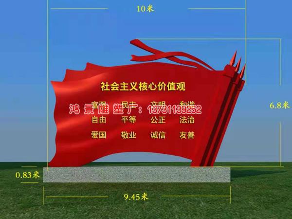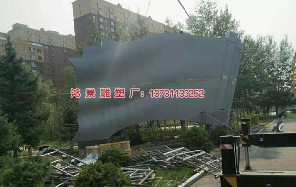 雕塑名稱:10米紅旗雕塑,海拉爾不銹鋼紅旗塑像安裝